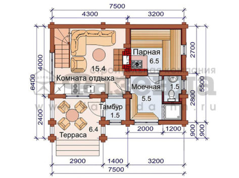 | Высота 1 этажа: | 2,5 м. (от пола до потолка) |