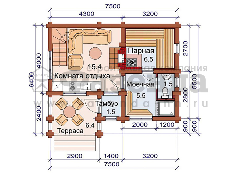 | Стены и перегородки: | Стены выполнены из оцилиндрованного бревна диаметром 200 мм. с лунным пазом и чашкой естественной влажности. Производство на севере Кировской области. Обвязочный брус 150х150 мм. |