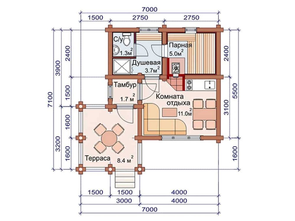 | Перекрытия: | Балки перекрытия 50х150, шаг 600 |