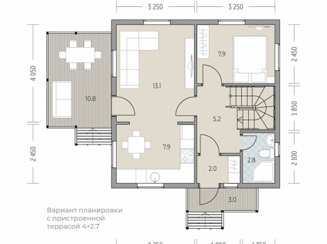 Общая площадь помещений: 42,75 м.кв. + терраса 12 кв.м