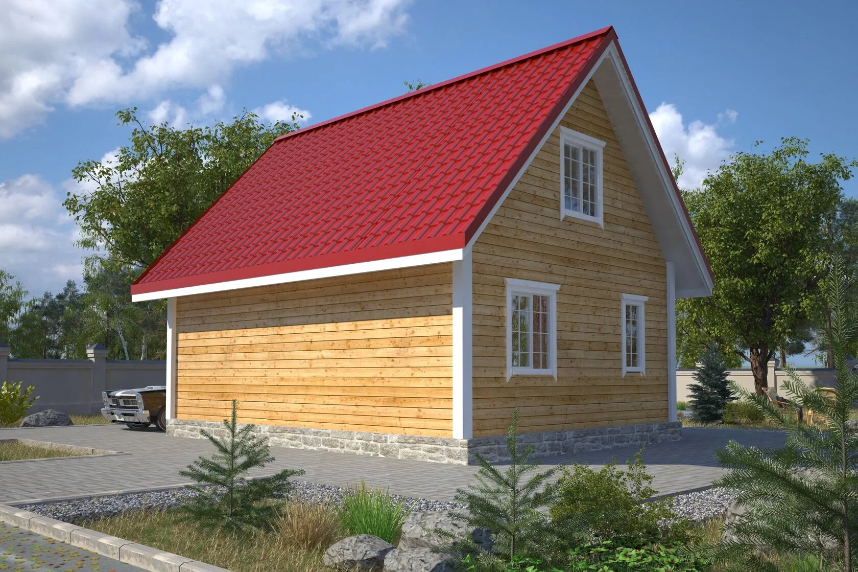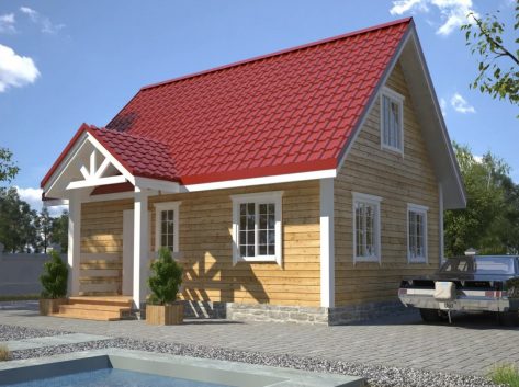 | Кровля | -Стропила крыши – доска 50х150мм. -Обрешетка -Гидро-ветроизоляционная мембрана -Крашеный профнастил -Карнизы – Вагонка |