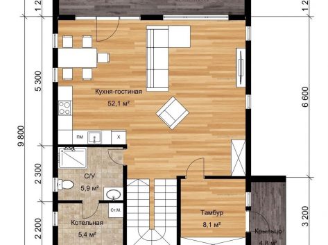 | Наружная отделка | Рау-Хаус (имитация бруса) с заводской покраской или крашеный профлист |