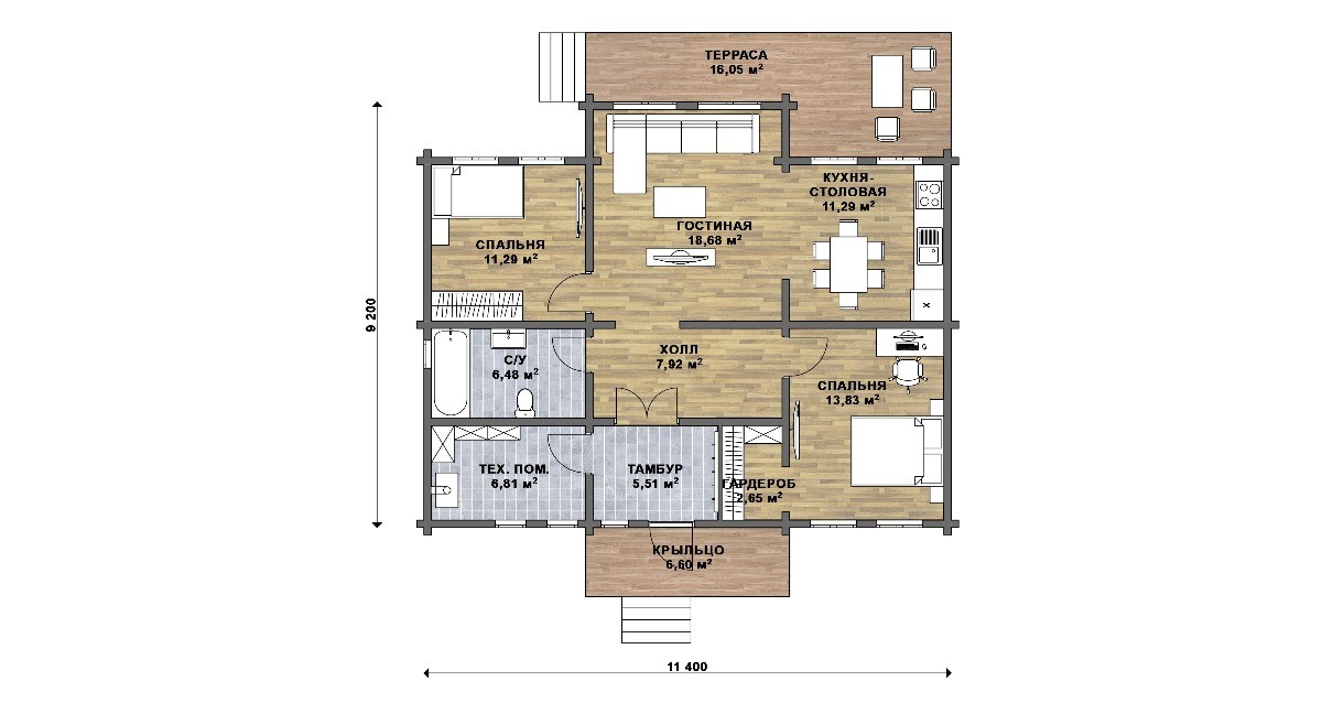| Окна | ПВХ, двухкамерный стеклопакет (размеры в соответствии с проектом) |