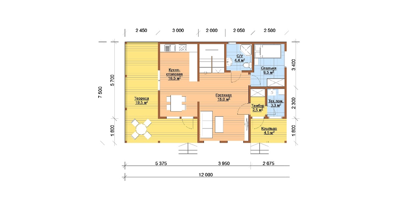 | Наружная отделка | Рау-Хаус (имитация бруса) с заводской покраской или Хауберг (отделка под кирпич) |