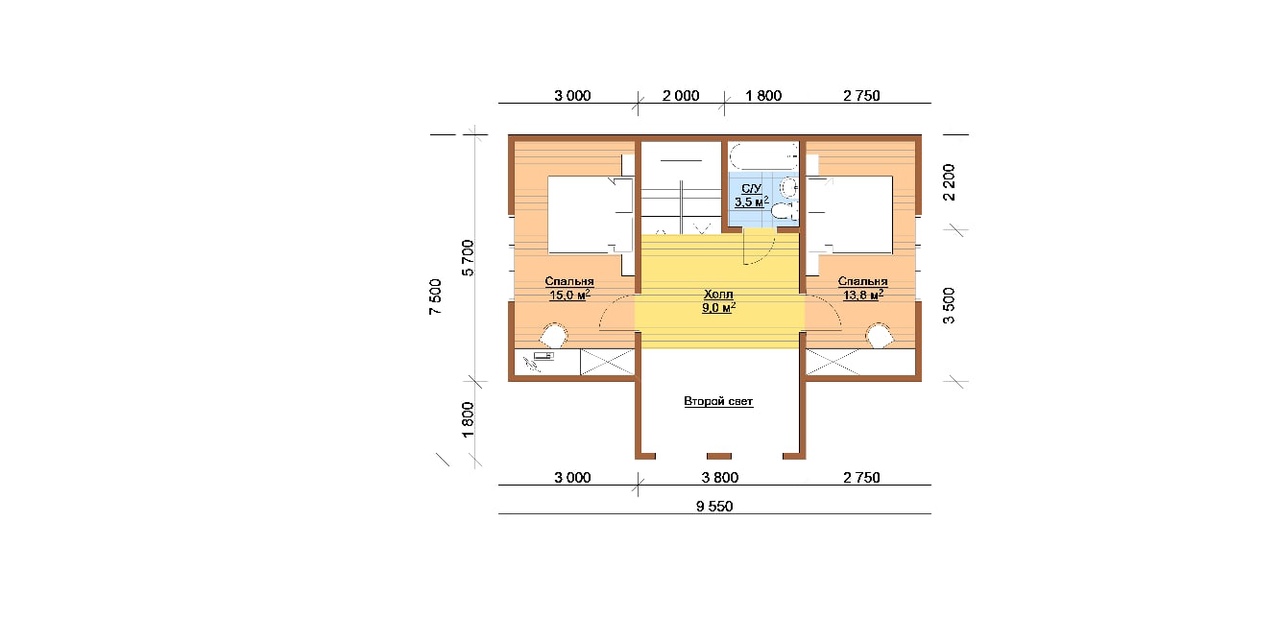 2 этаж — 2,5 м. |