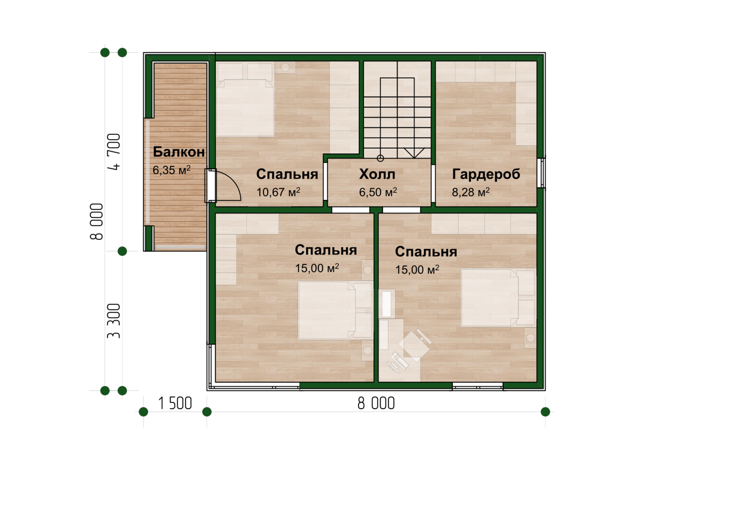 | Лестница | По проекту, с ограждениями |