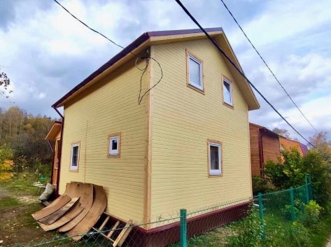 -Вентиляционный зазор -Наружная отделка – Вагонка -Теплоизоляция 1 и 2 эт. – 100 мм. -Гидро-ветроизоляция -Внутренняя отделка (стены 1 и 2 эт.) – Вагонка |