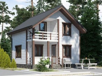 «Барн» 1 130 000 руб. Размеры: 6,0 х 6,0 + терраса 2,0х6,0м Общая площадь помещений: 72 м.кв. Этажность: 2 Срок строительства: 21 день Подробнее