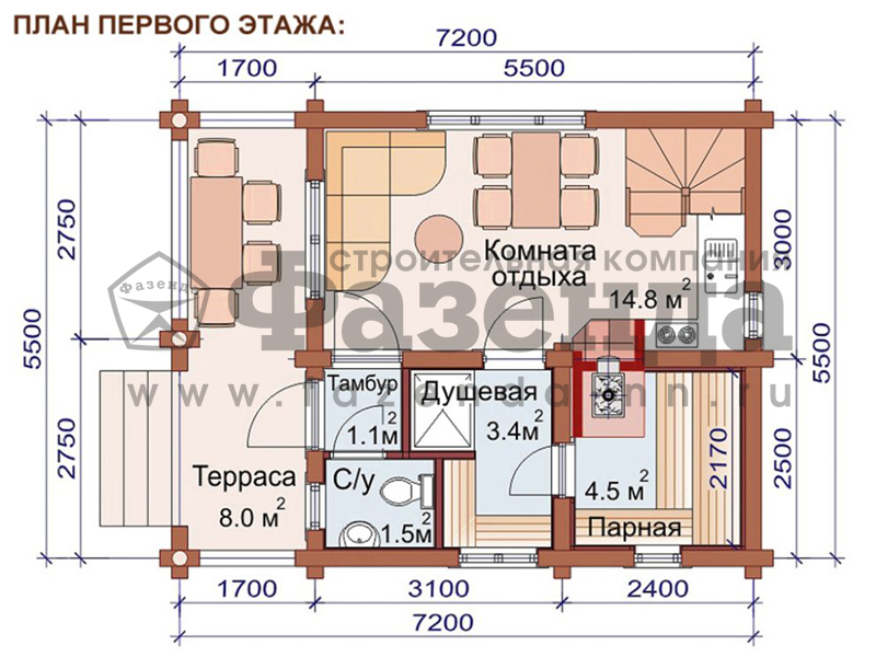 | Высота 1 этажа: | 2,6 м. (от пола до потолка) |