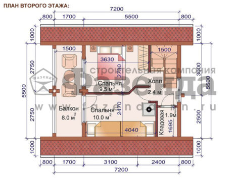 | Высота 2 этажа: | 2,5 м. (полуторный этаж) |