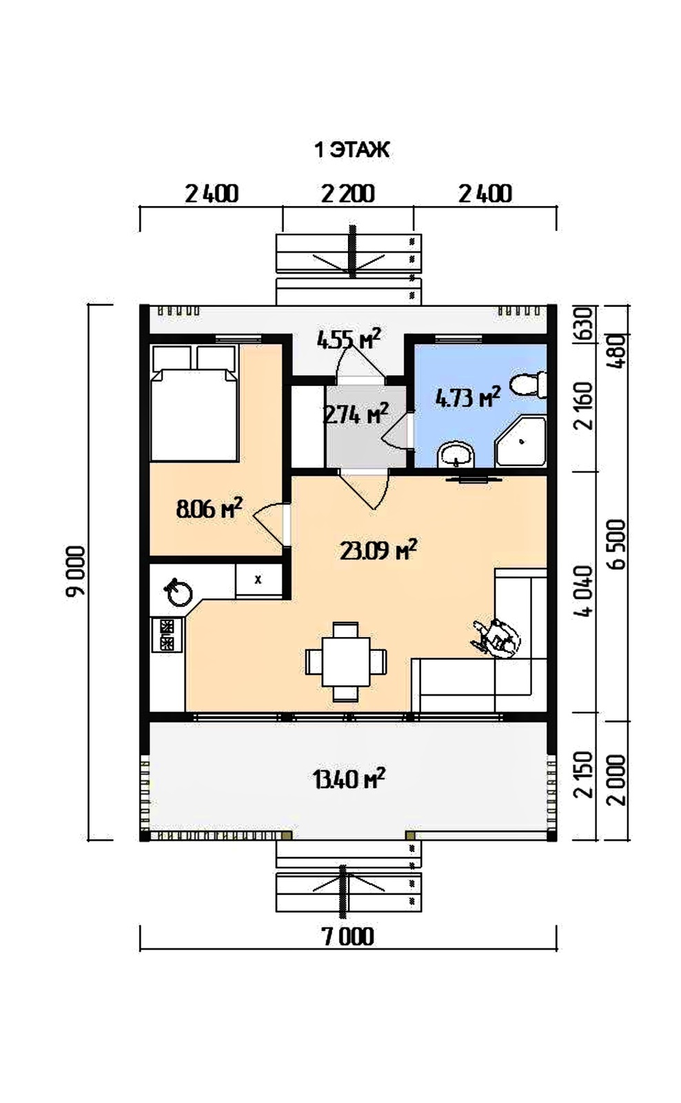 | Окна | ПВХ, двухкамерный стеклопакет (размеры в соответствии с проектом) |