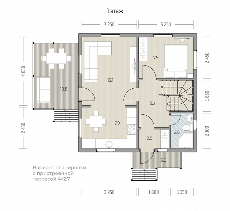 Общая площадь помещений: 42,75 м.кв. + терраса 12 кв.м