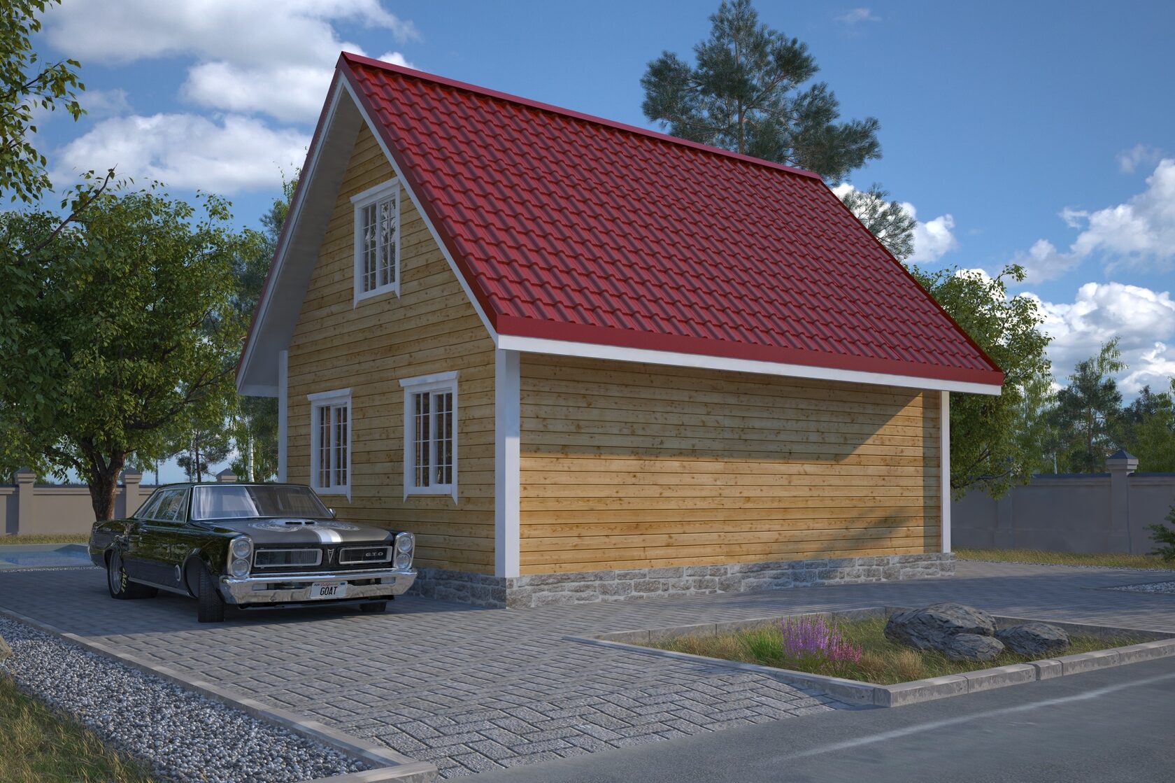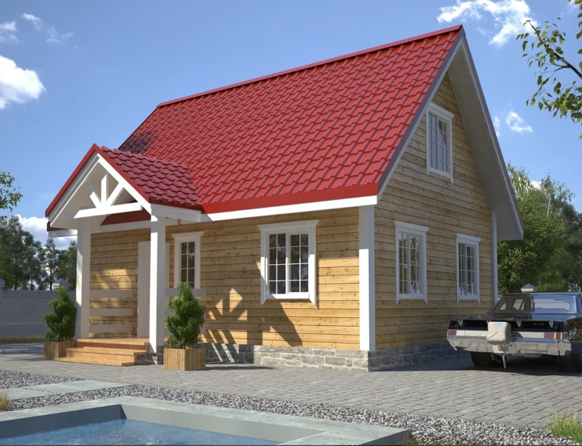 | Кровля | -Стропила крыши – доска 50х150мм. -Обрешетка -Гидро-ветроизоляционная мембрана -Крашеный профнастил -Карнизы – Вагонка |