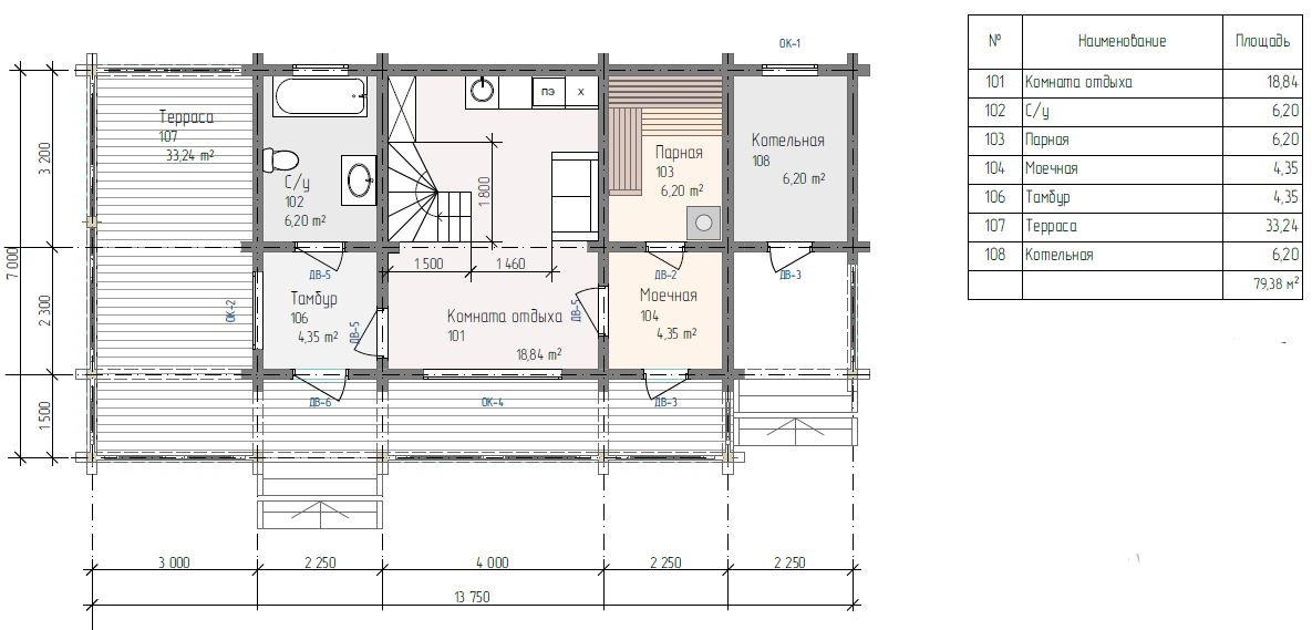 Входная дверь — металлическая, с терморазрывом Лестница — по проекту, с ограждениями |