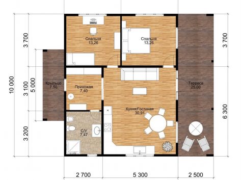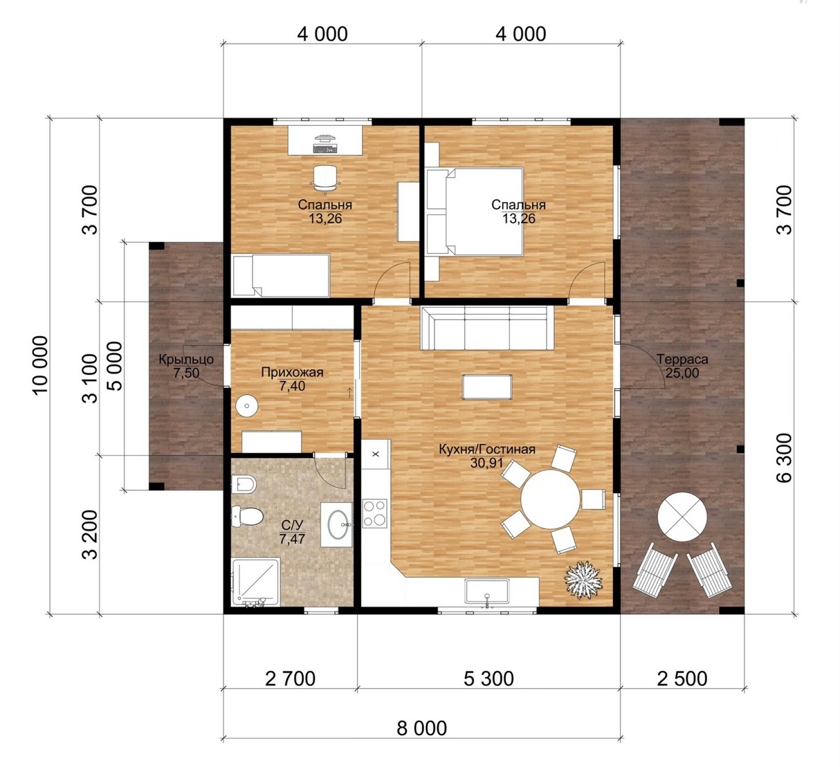 | Наружная отделка | Рау-Хаус (имитация бруса) или Крашеный профлист |