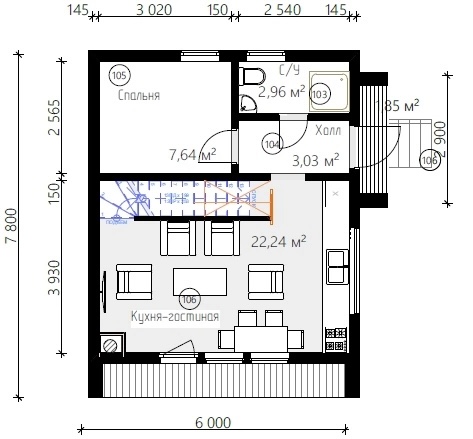 | Окна | ПВХ, двухкамерный стеклопакет (размеры в соответствии с проектом) |