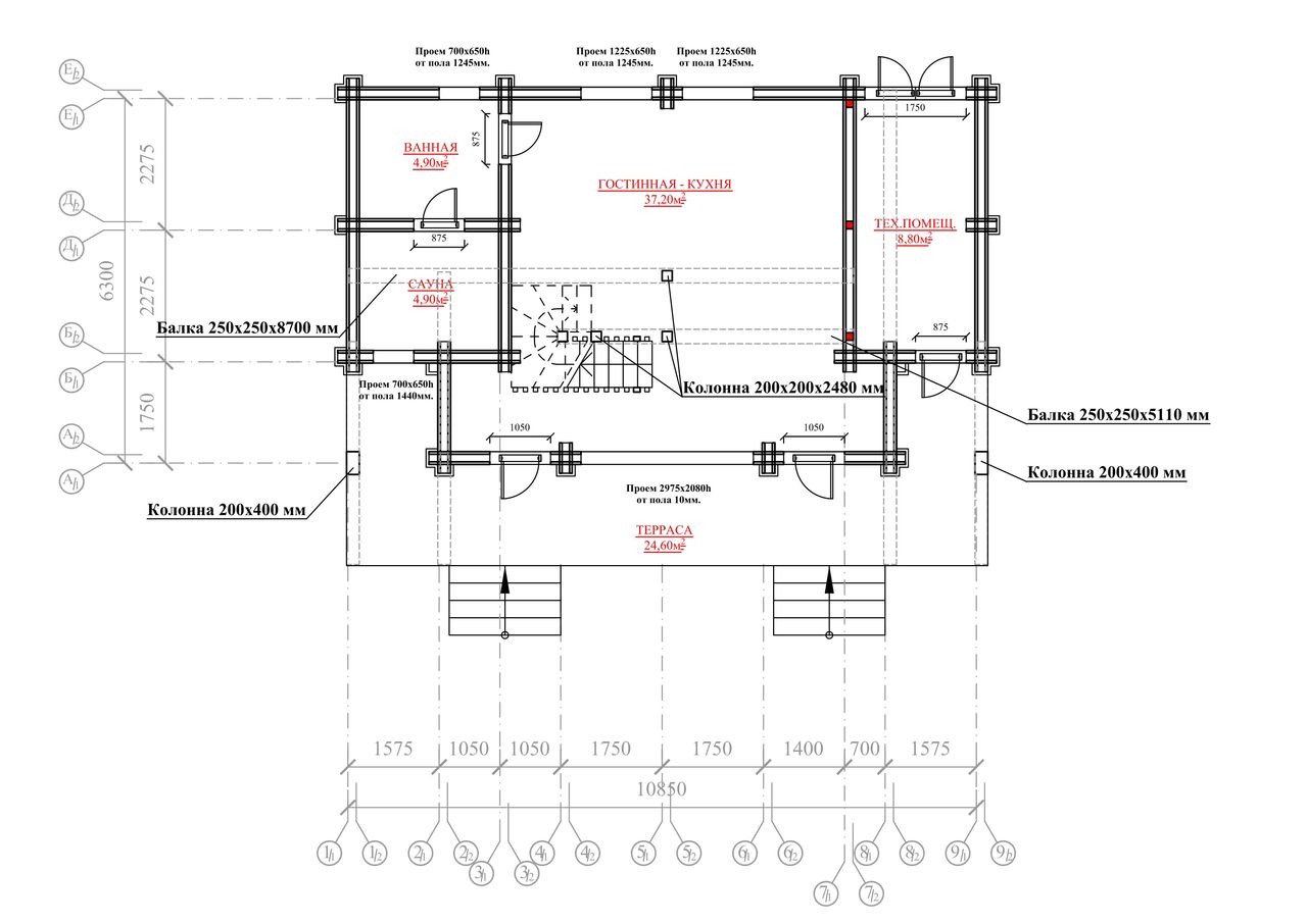 Входная дверь — металлическая, с терморазрывом Лестница — по проекту, с ограждениями |
