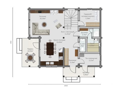 | Технология: | Проект может быть исполнен из клееного бруса и профилированного бруса. |