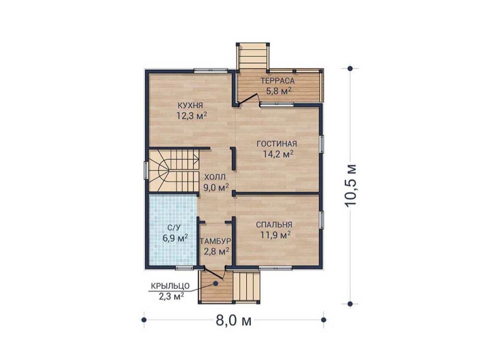 | Наружная отделка | Рау-Хаус (имитация бруса) с заводской покраской или Хаубер (отделка под кирпич) |