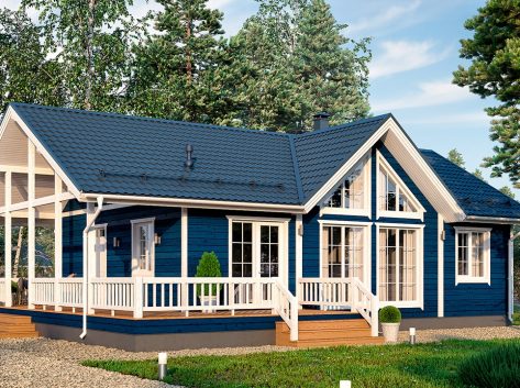 -Наружная отделка – Хауберг (отделка под кирпич) или Рау-хаус (имитация бруса) -Теплоизоляция – 150мм. -Внутренняя отделка стен, перегородок – ГКЛВ |