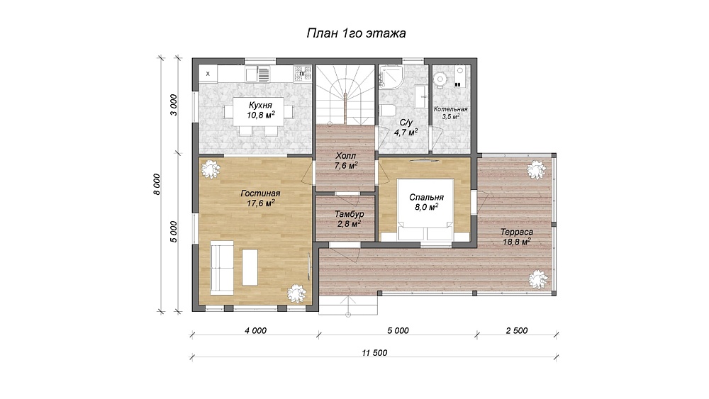 | Лестница | По проекту, с ограждениями |