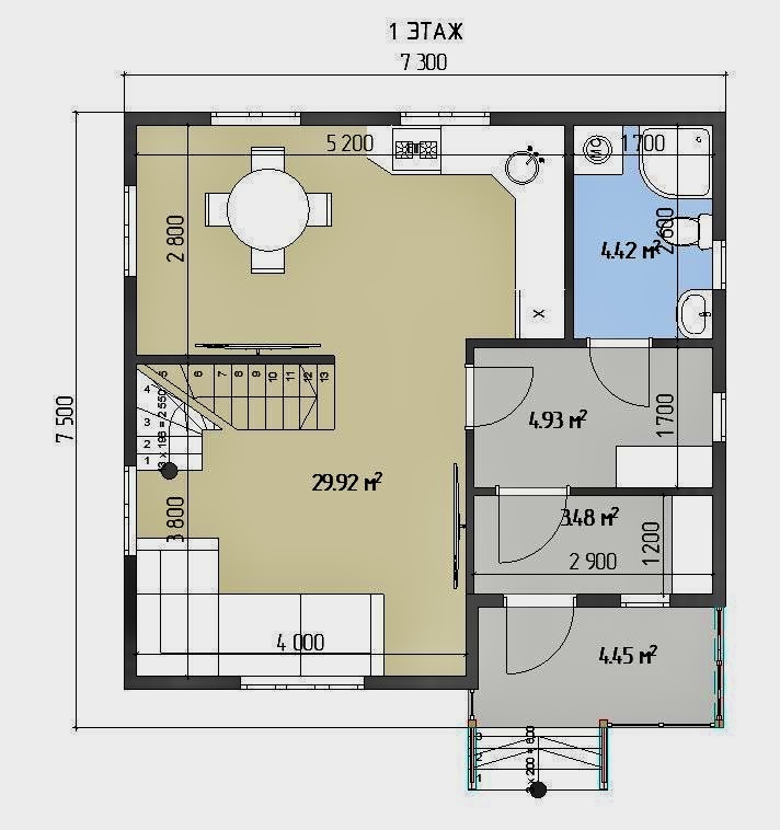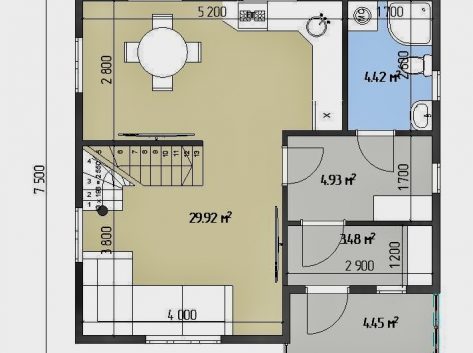 -Наружная отделка – Хауберг (отделка под кирпич) или Рау-хаус (имитация бруса) -Теплоизоляция 150мм. -Внутренняя отделка стен, перегородок – ГКЛВ |