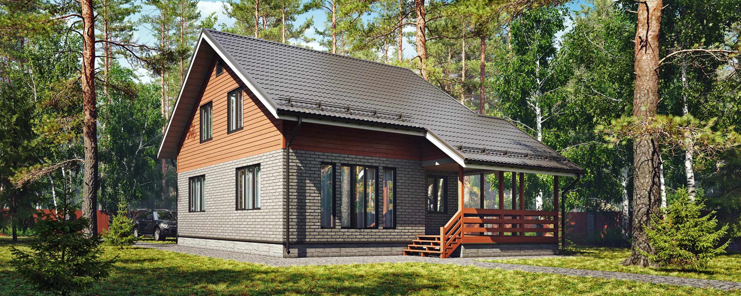 | Кровля | Стропила крыши – доска 50х150мм, Обрешетка, Гидро-ветроизоляционная мембрана АМ, Металлочерепица |
