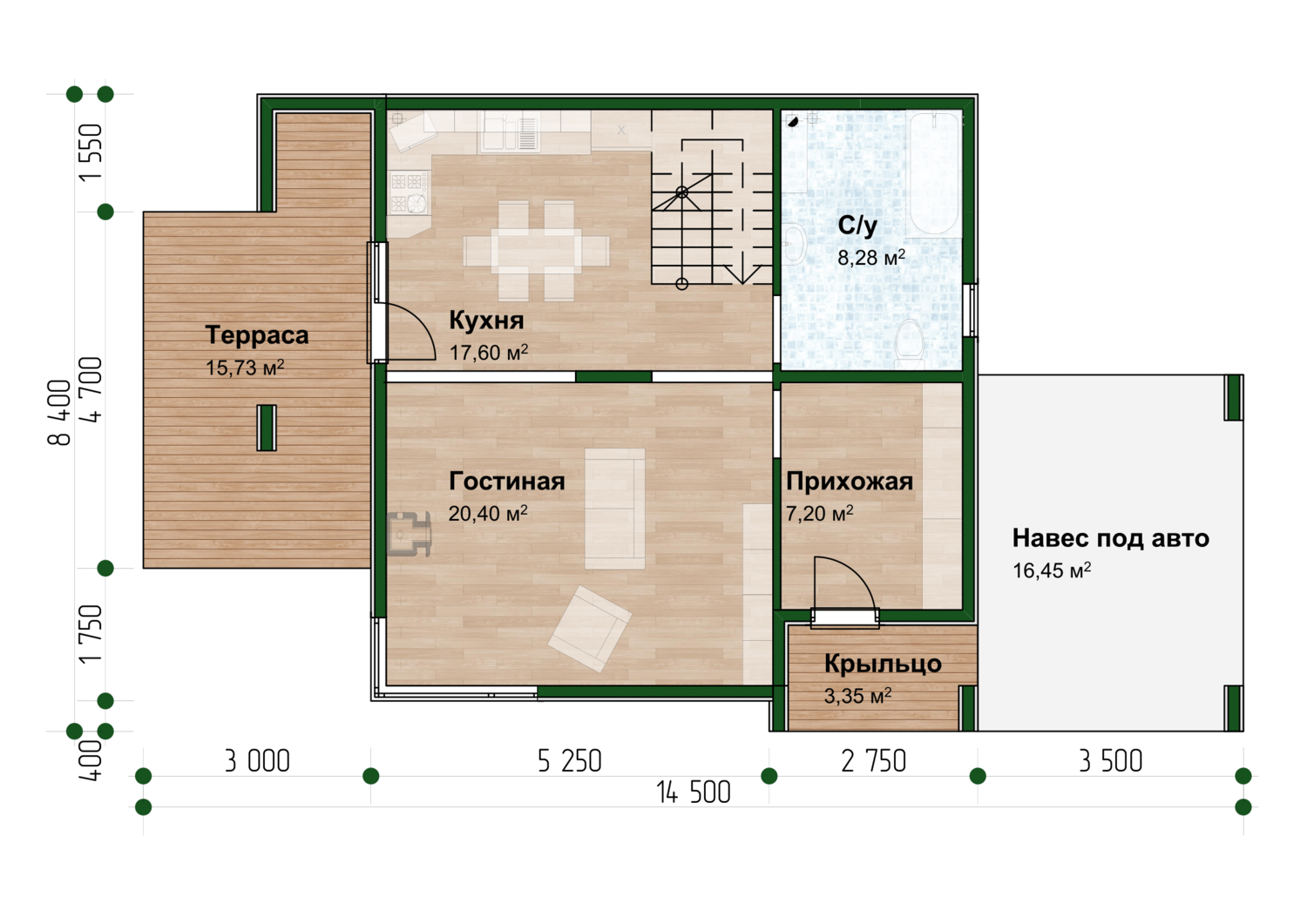 | Лестница | По проекту, с ограждениями |