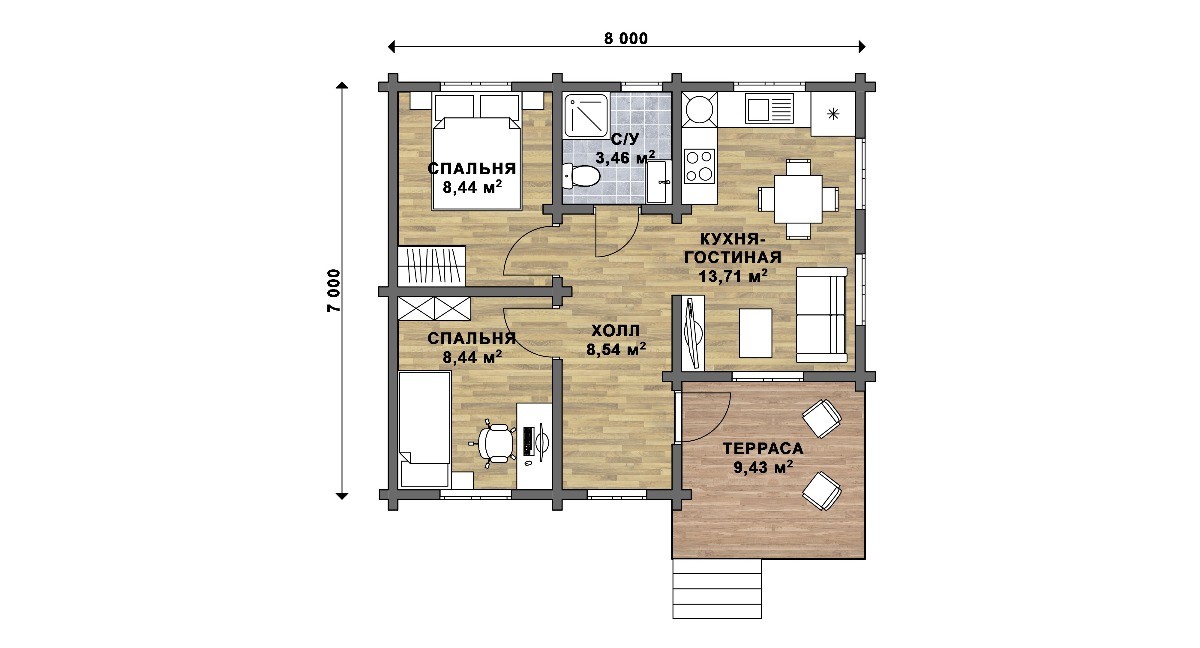 -Настил пола: шпунтованная доска |